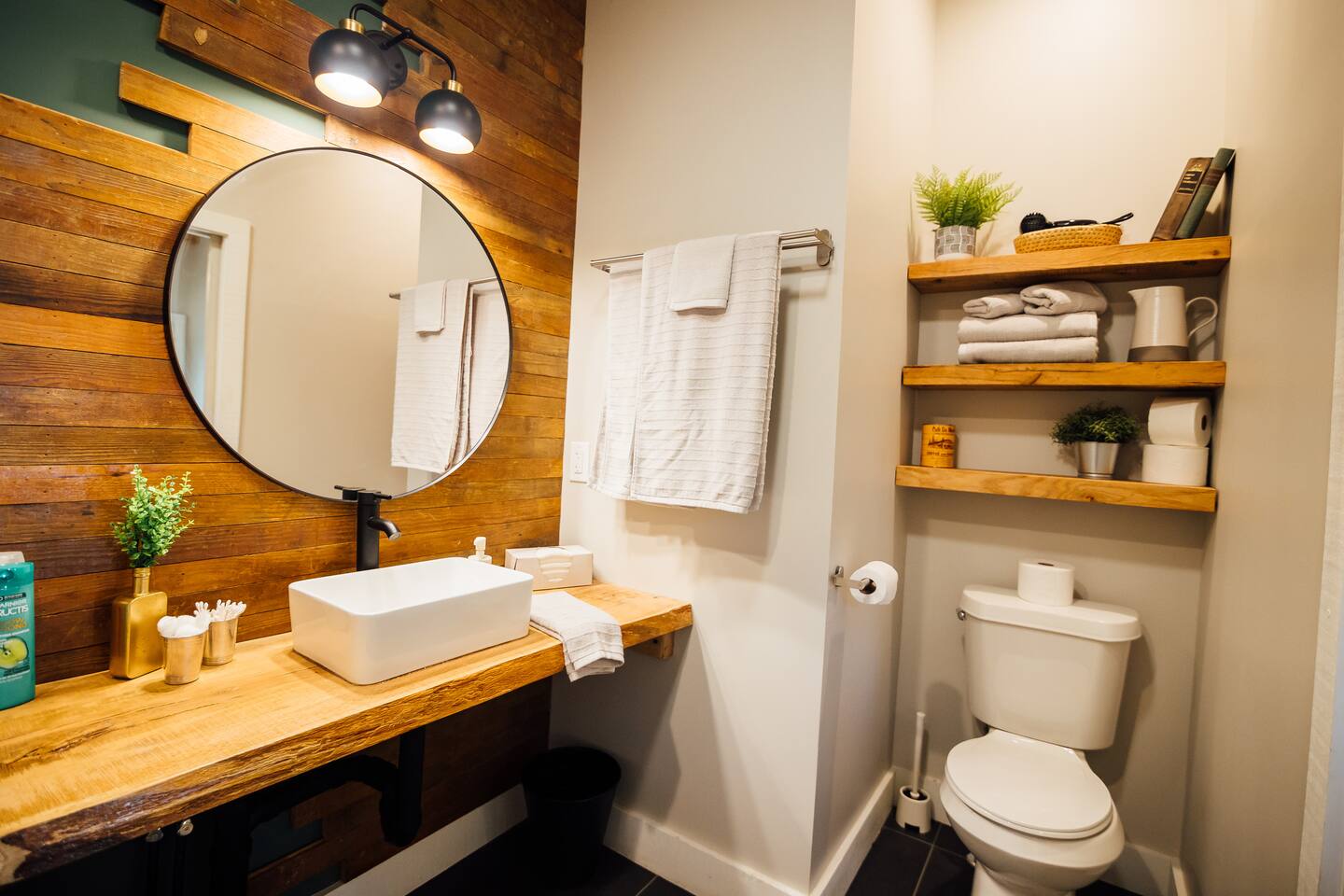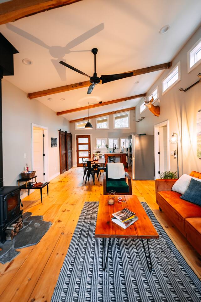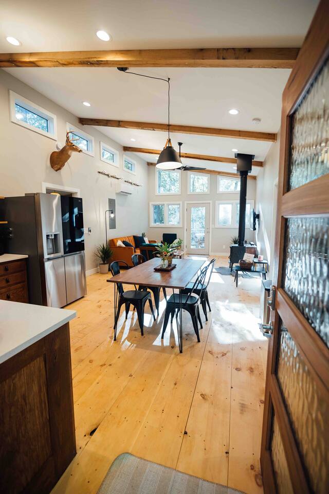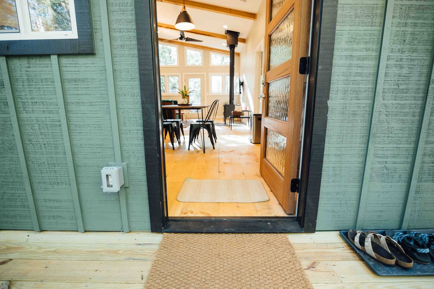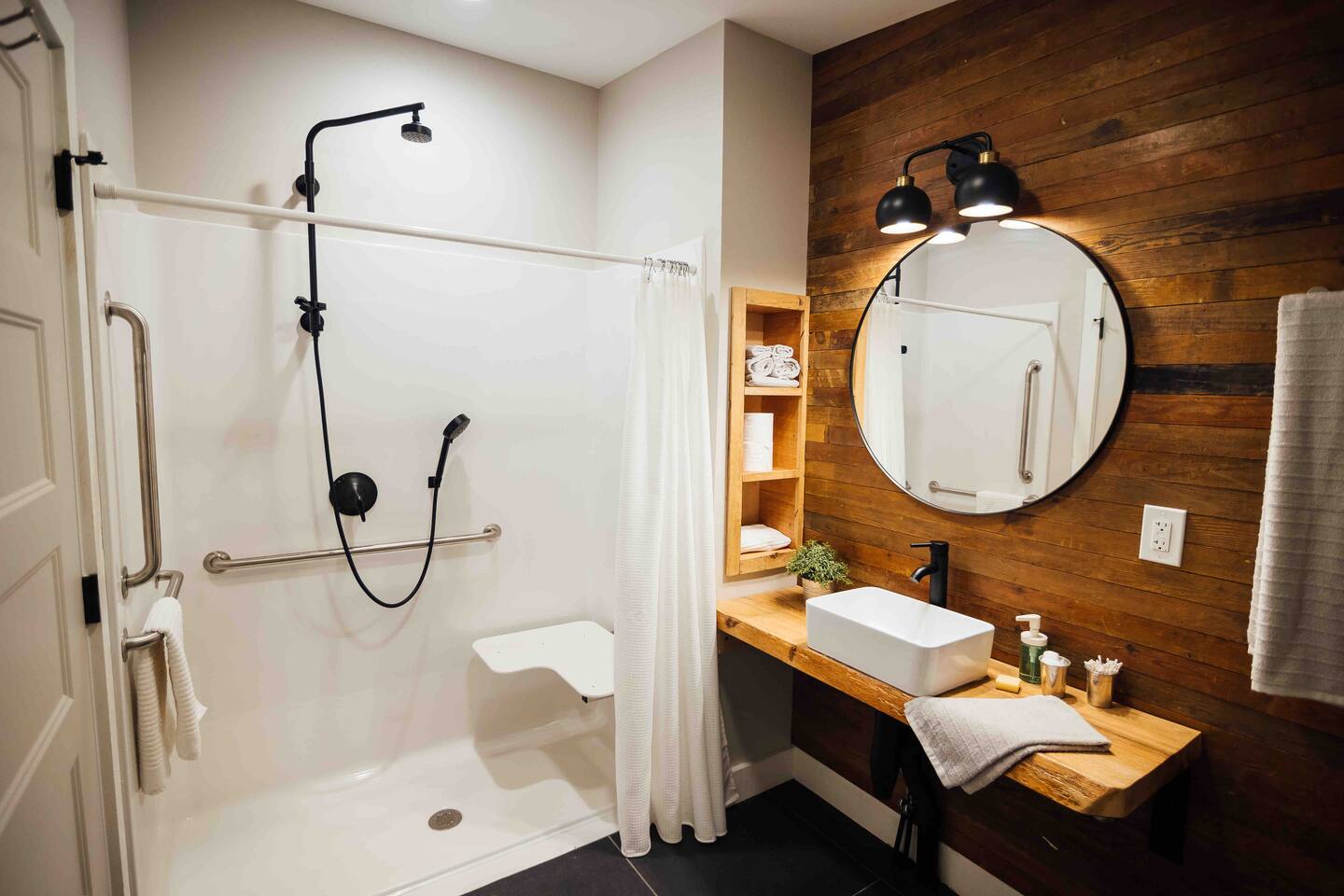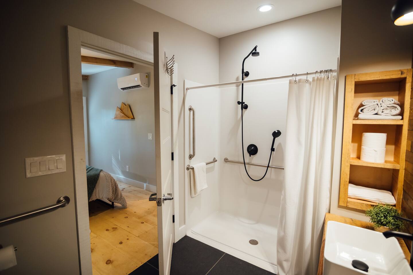 “Beautiful...comfortable...close to everything...spotless...perfect...peaceful” This is what recent guests have to say about their experience at Trahlyta. This new two-bedroom and two-bath modern cabin sits on 6 wooded acres just 10 minutes from town. The cabin is located at the end of a short paved driveway with easy access and plenty of parking. We are pet friendly and would love to host you and your pets during your trip to Dahlonega! Trahlyta Cabin was universally designed so that people of all abilities could have a beautiful, comfortable, and thoughtfully-designed space in which to experience the joy of travel. There is a ramp for wheelchair/limited mobility access. All interior doors are 36” wide. All appliances are ADA-compliant. All sinks are wheel-under. The kitchen table is wheel-under height as well. All doors have lever handles. The ADA bathroom is equipped with grab bars, a roll-in shower with a bench, and a handheld showerhead. Each bedroom features a queen-sized bed, its own mini-split AC/heat unit, and an en suite bathroom. Bathroom 1 features a wheelchair-accessible roll-in shower and grab bars in the shower and at the toilet. Bathroom 2 features a soaking tub and rainfall shower head and TUSHY bidet. Cause you're fancy like that. The living room is cozy, with a couch, chairs, a wood-burning stove, a TV with Roku, board games, a sound bar with Bluetooth connectivity, and even coloring books for the kids! Speaking of kiddos, we are happy to supply a pack-n-play and some toys/books - please let us know if you would like this accommodation. Dahlonega has some of the best dining in North Georgia, but sometimes you want something home-cooked. Cook a meal in our fully-stocked kitchen and gather around our dining table for four or take some plates outside to the patio dining set. The kitchen features stainless steel appliances and granite countertops, with complimentary 8-o'clock coffee and various tea offered to guests. We have a French press and a Keurig coffee maker. We have reusable K-cups or feel free to bring your own. Also, the fridge makes craft ice balls - perfect for an after-dinner cocktail. We have a charcoal grill located on the back deck- bring some charcoal and have a cookout! After a day of adventures, relax on the back deck which feels more like a tree fort, or around the fire pit. Enjoy the brand new outdoor tv area! Explore the woods! You might see some wildlife! You'll probably see Mama Deer and her fawn. We've also seen chipmunks, hawks, squirrels, and some guests are lucky enough to have seen black bears. Relax in the hammock on the back deck, but do so at your own risk! Whatever brings you to Dahlonega, we hope to provide you with a luxurious and comfortable experience at Trahlyta. **Cleaned and sanitized after each guest using CDC-recommended guidelines. We are committed to offering you a clean, safe place to vacation with friends or family.** Early check-in may be available for an additional fee of $35. STR License 4595