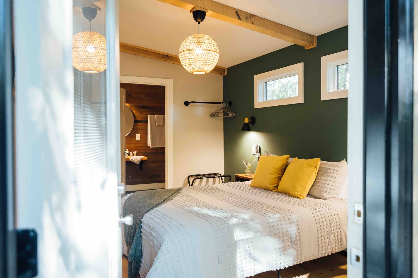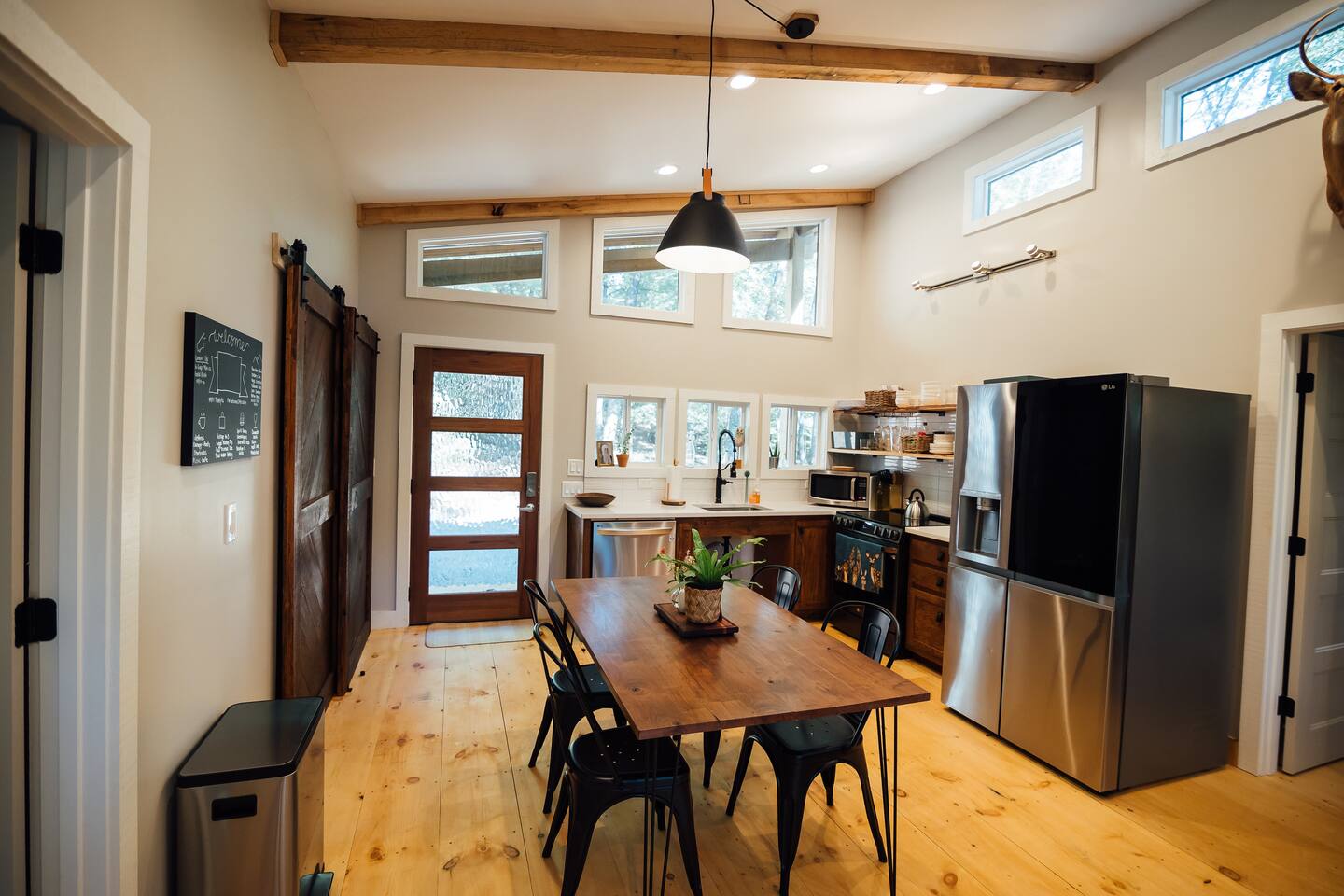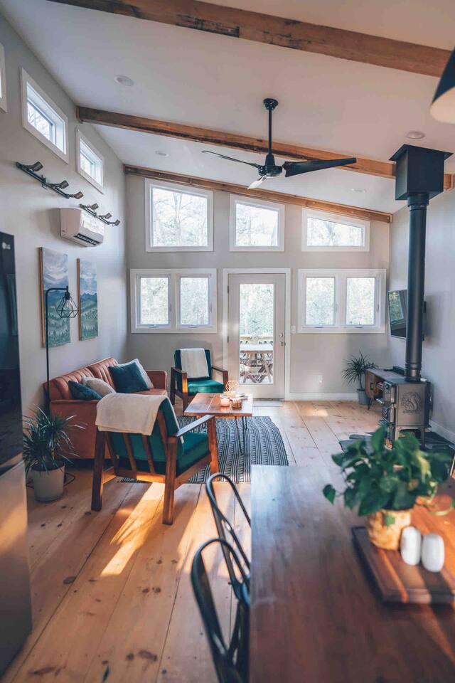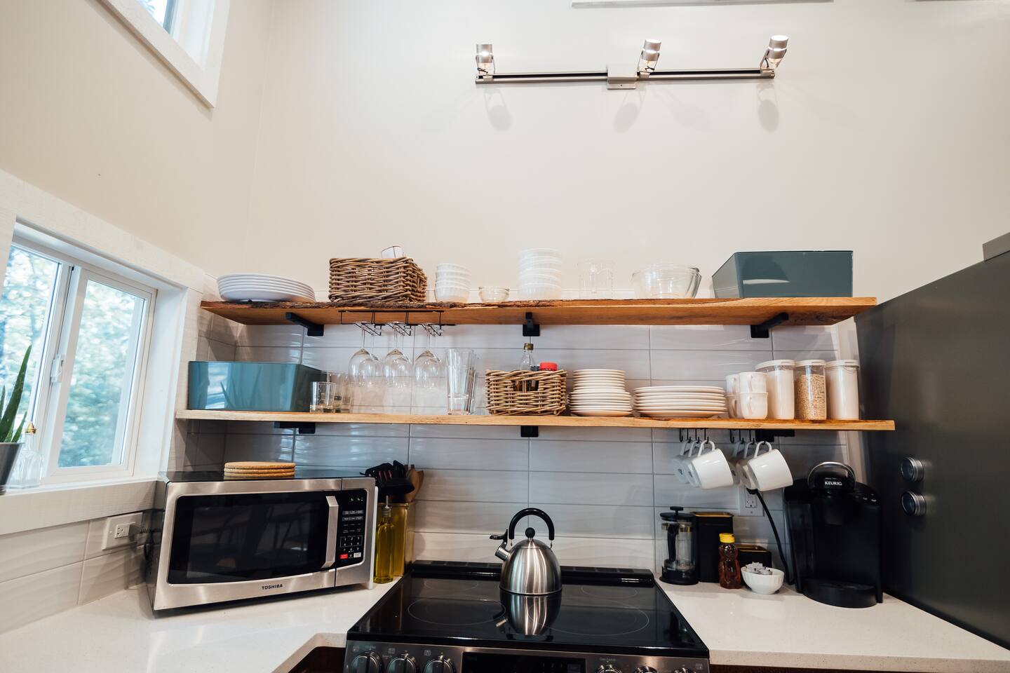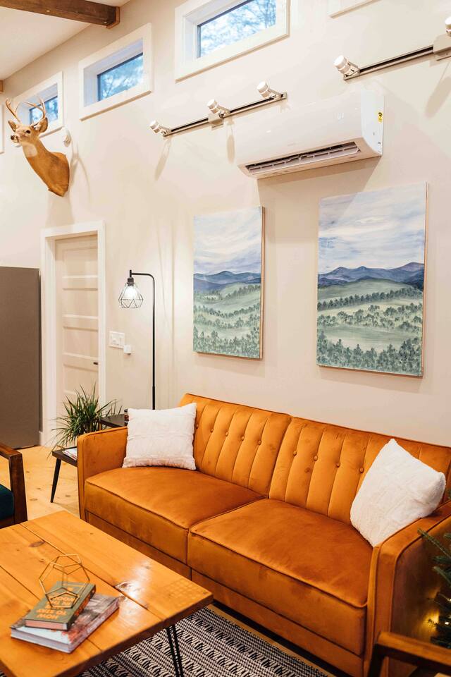 “Beautiful...comfortable...close to everything...spotless...perfect...peaceful” This is what recent guests have to say about their experience at Trahlyta. This new two-bedroom and two-bath modern cabin sits on 6 wooded acres just 10 minutes from town. The cabin is located at the end of a short paved driveway with easy access and plenty of parking. We are pet friendly and would love to host you and your pets during your trip to Dahlonega! Trahlyta Cabin was universally designed so that people of all abilities could have a beautiful, comfortable, and thoughtfully-designed space in which to experience the joy of travel. There is a ramp for wheelchair/limited mobility access. All interior doors are 36” wide. All appliances are ADA-compliant. All sinks are wheel-under. The kitchen table is wheel-under height as well. All doors have lever handles. The ADA bathroom is equipped with grab bars, a roll-in shower with a bench, and a handheld showerhead. Each bedroom features a queen-sized bed, its own mini-split AC/heat unit, and an en suite bathroom. Bathroom 1 features a wheelchair-accessible roll-in shower and grab bars in the shower and at the toilet. Bathroom 2 features a soaking tub and rainfall shower head and TUSHY bidet. Cause you're fancy like that. The living room is cozy, with a couch, chairs, a wood-burning stove, a TV with Roku, board games, a sound bar with Bluetooth connectivity, and even coloring books for the kids! Speaking of kiddos, we are happy to supply a pack-n-play and some toys/books - please let us know if you would like this accommodation. Dahlonega has some of the best dining in North Georgia, but sometimes you want something home-cooked. Cook a meal in our fully-stocked kitchen and gather around our dining table for four or take some plates outside to the patio dining set. The kitchen features stainless steel appliances and granite countertops, with complimentary 8-o'clock coffee and various tea offered to guests. We have a French press and a Keurig coffee maker. We have reusable K-cups or feel free to bring your own. Also, the fridge makes craft ice balls - perfect for an after-dinner cocktail. We have a charcoal grill located on the back deck- bring some charcoal and have a cookout! After a day of adventures, relax on the back deck which feels more like a tree fort, or around the fire pit. Enjoy the brand new outdoor tv area! Explore the woods! You might see some wildlife! You'll probably see Mama Deer and her fawn. We've also seen chipmunks, hawks, squirrels, and some guests are lucky enough to have seen black bears. Relax in the hammock on the back deck, but do so at your own risk! Whatever brings you to Dahlonega, we hope to provide you with a luxurious and comfortable experience at Trahlyta. **Cleaned and sanitized after each guest using CDC-recommended guidelines. We are committed to offering you a clean, safe place to vacation with friends or family.** Early check-in may be available for an additional fee of $35. STR License 4595